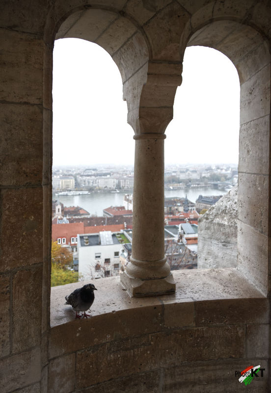 Állítólag a pajzsán is látszik Budapest címere, de valami ilyesmi lenne a jobbik megoldás, ha nem lógott volna ki a templomtorony csúcsa. A nyüzsgő túristákból is elegem volt. Magamban bosszút fogadtam, hogy az összes túristát bokában-térdben-csuklóban-könyökbenn fogom elmetélni. Azután csak az lett, hogy a kép közepén szambázó nő hupilila kabátját sötétítettem be.