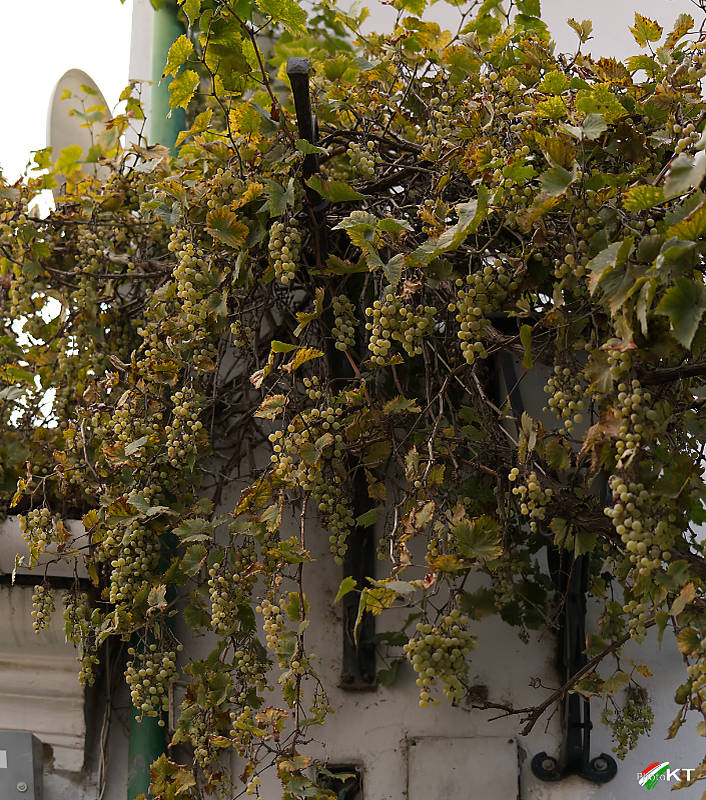 Ennek a zöldellő diadalívnek egy része szőlő.